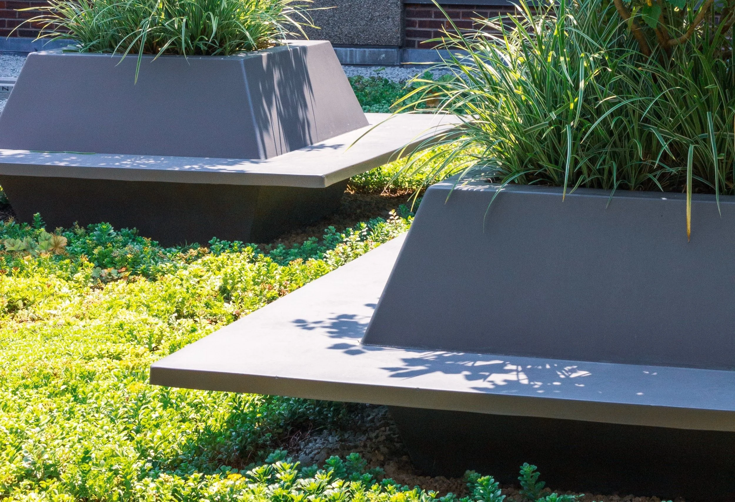 As the cedar trees grow in, they will create a privacy screen to shield the generators from view while still allowing them to be accessible to maintenance teams. Throughout the winter, the deep green of the cedars provide a nice contrast to the bright sedum.
